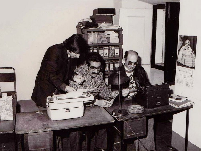 É dessa época a fotografia que acompanha este texto, da autoria do falecido João Carpinteiro. Além do meu pai, frente à máquina de escrever, podemos ver a seu lado António Serra e, ao lado deste, o também já desaparecido Júlio Candeias.