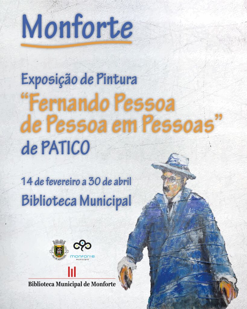 A Biblioteca Municipal de Monforte acolhe, de 14 de fevereiro a 30 de abril, a exposição de pintura “Fernando Pessoa, de Pessoa em Pessoas”, do artista monfortense PATICO.