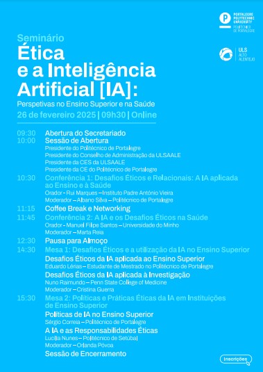 “Ética e Inteligência Artificial (IA) Perspetivas no Ensino Superior e na Saúde” é o tema geral de um seminário que vai decorrer dia 26 de Fevereiro no Instituto Politécnico de Portalegre.