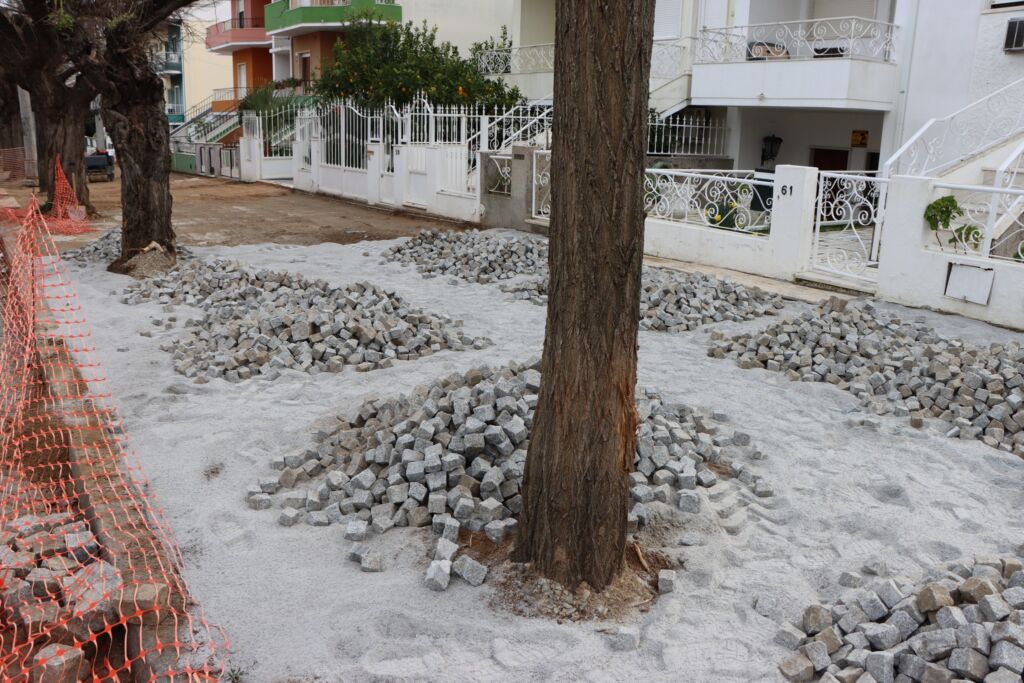 A empreitada de colocação de calçadas, em cubos de granito, prossegue agora, com a requalificação a ter início na Avenida da Piedade, junto ao tabuleiro do Parque da Piedade.