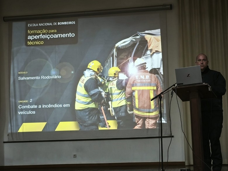 A iniciativa contou com a presença de dois formadores da Escola Nacional de Bombeiros, que abordaram a temática dos incêndios em veículos na vertente teórica. Da parte da tarde teve lugar uma simulação prática no exterior, que contribuiu para esclarecimento de alguns preconceitos instalados sobre as diferentes tipologias de viaturas e respectiva abordagem em caso de acidente ou incêndio.