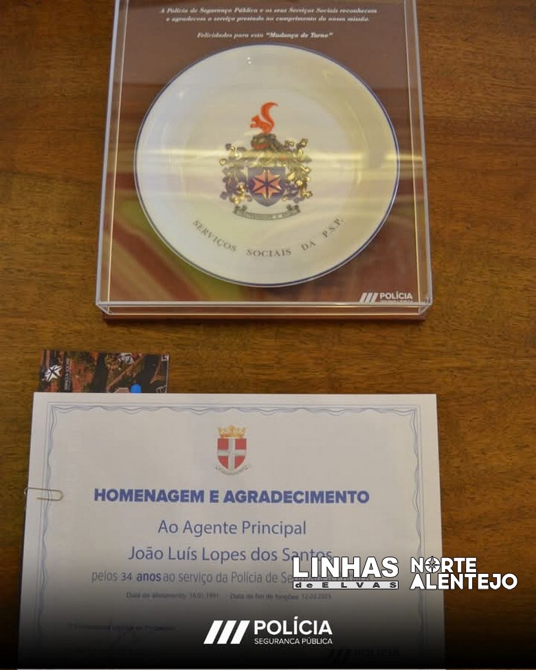 A Policia de Segurança Pública de Portalegre, por intermédio da Comandante Distrital, Superintendente Isabel da Conceição de Figueiredo Nabeiro Canelas, recebeu nesta quinta-feira , 6 de Março, o “último turno” do Agente Coordenador Rui Enes e do Agente Principal João Santos, que ao fim de 40 e 34 anos de serviço, respetivamente, passaram à situação de pré-aposentação.