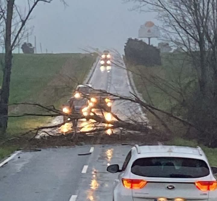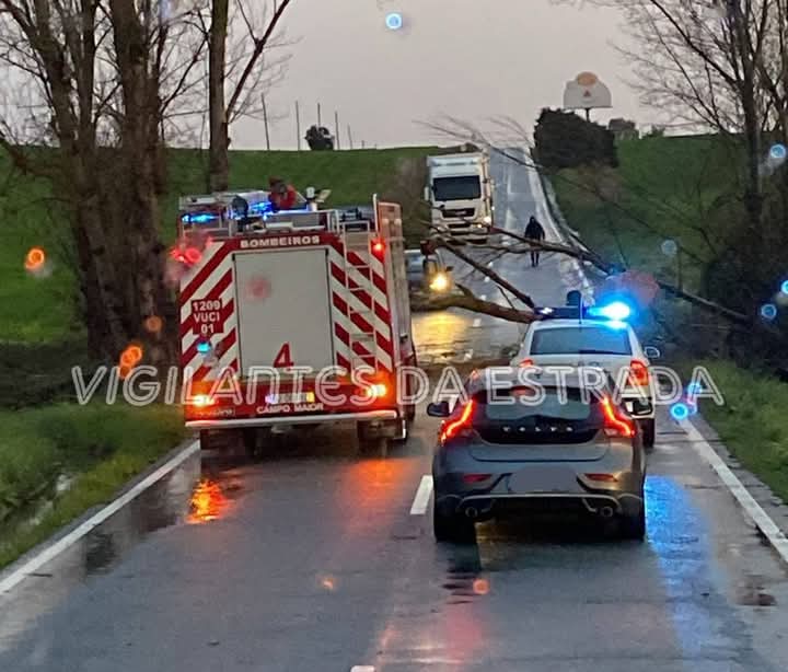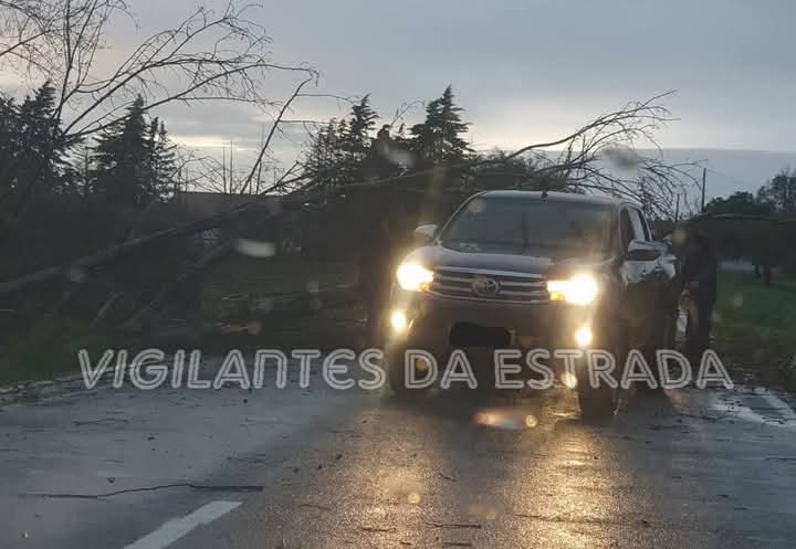 Na estrada que liga Campo Maior a Badajoz, está uma árvore caída na estrada que impede a circulação automóvel.