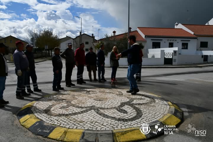 Idalina Trindade, acompanhada por elementos do município nisense, esteve na rotunda da Praça da Touros onde foi tomada uma medida para salvaguardar “a bonita calçada que a adorna com motivos identitários”.