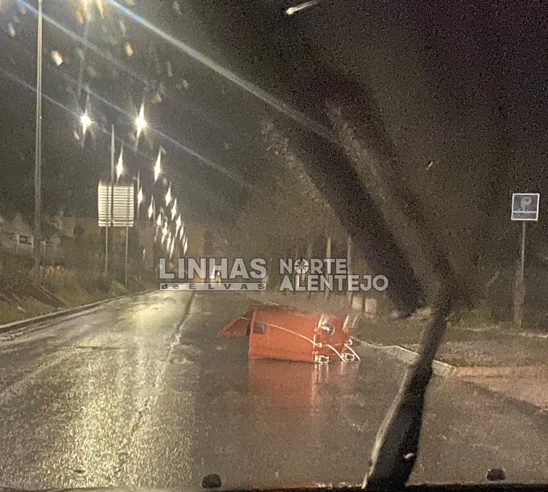 Caixotes do lixo deslocados dos respectivos locais e quedas de painéis publicitários foram outras das situações registadas um pouco por todo o Alentejo.