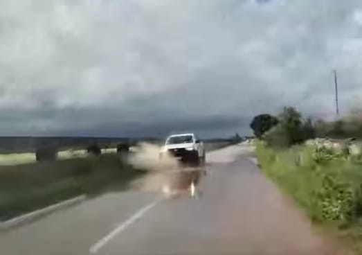 Neste caso, trata-se da estrada entre Cano e Estremoz que está completamente alagada e propícia a acidentes de viação.
