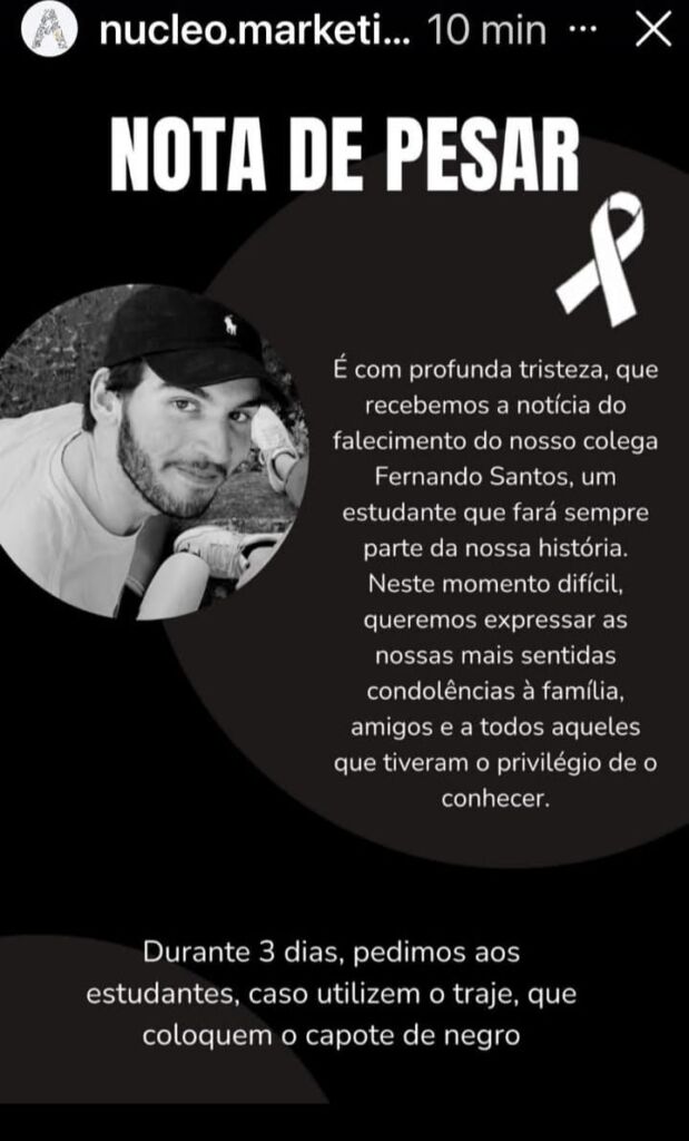 Fernando estava prestes a concluir os estudos no Instituto Politécnico de Portalegre (IPP): “Ficam as boas memórias e a saudade nos seus colegas e professores, neste momento de enorme tristeza”, escreveram em jeito de homenagem.
