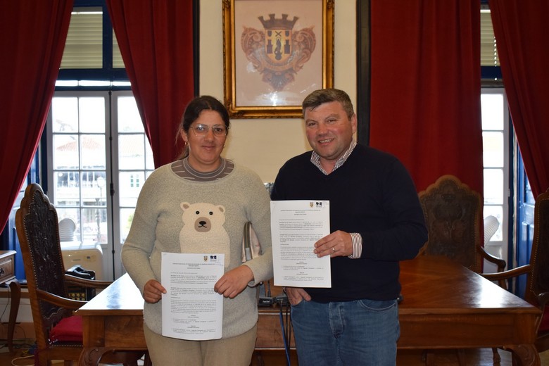 Inácio Esperança, presidente da Câmara Municipal de Vila Viçosa, procedeu à assinatura de um novo Contrato Individual de Trabalho Sem Termo, no Salão Nobre dos Paços do Concelho, com a funcionária Mara Carvalhal, na categoria de Serviços Gerais.