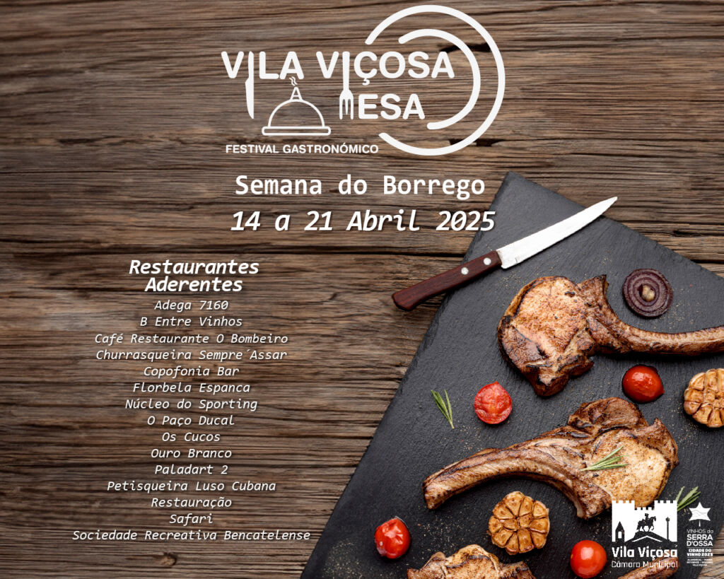O Município de Vila Viçosa promove, entre os dias 14 e 21 de abril de 2025, a Semana Gastronómica do Borrego, um festival dedicado a um dos sabores mais emblemáticos da culinária alentejana.