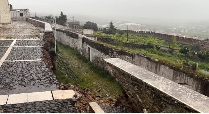 Estremoz não foi excepção: para além das cheias em ruas e moradias, parte de um muro no Castelo de Estremoz acabou por desabar, junto à estátua da Rainha Santa Isabel, zona que é sempre muito visitada por turistas.