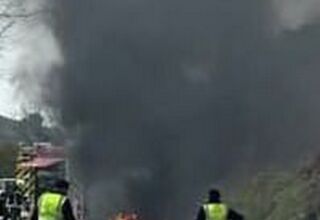A meio da tarde desta quarta-feira, 9 de Abril, no final da Via rápida do Sudoeste de Espanha, A – 5 E – 90, uma carrinha foi consumida inteiramente pelas chamas.