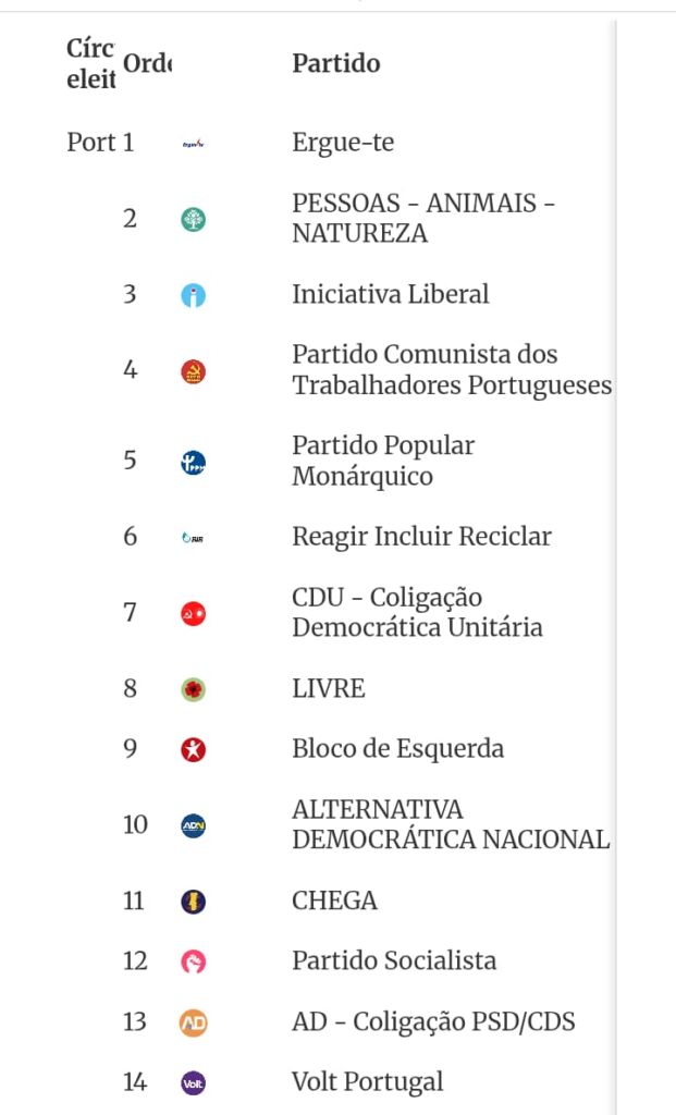 Já é conhecida a ordem dos partidos nos boletins de voto.