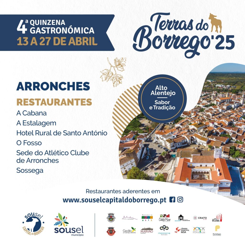 São seis os restaurantes vão que apresentar propostas, associando-se à iniciativa que desta vez não se cinge ao concelho de Arronches, já que “4.ª Quinzena Gastronómica ‘Terras do Borrego'”, vai estar a decorrer em várias localidades do distrito e Portalegre, integrada no Festival Terras do Borrego, organizado pelo Município de Sousel.