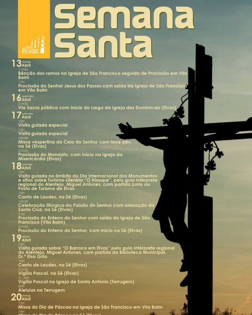 No concelho de Elvas as cerimónias religiosas de Sexta-feira Santa decorrem na Igreja de Nossa Senhora das Assunção (Sé) com Cântico de Laudes às 16h00 e a Procissão do Enterro do Senhor, às 21h30, precedida da adoração da Cruz.