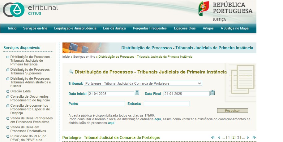 Foi neste espaço de consulta pública, selecionando o Tribunal Judicial da Comarca de Portalegre, que obtivemos a informação e as imagens que a comprovam, considerando agora pertinente fazer a sua divulgação.