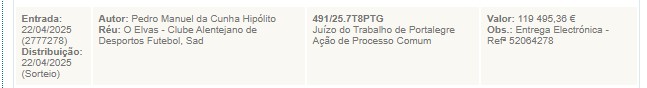 O Jornal “Linhas de Elvas” avançou hoje em primeira mão uma notícia dando conta da existência de um processo judicial movido pelo ex-treinador Pedro Hipólito contra a O Elvas Clube Alentejano de Desportos Futebol, Sad.