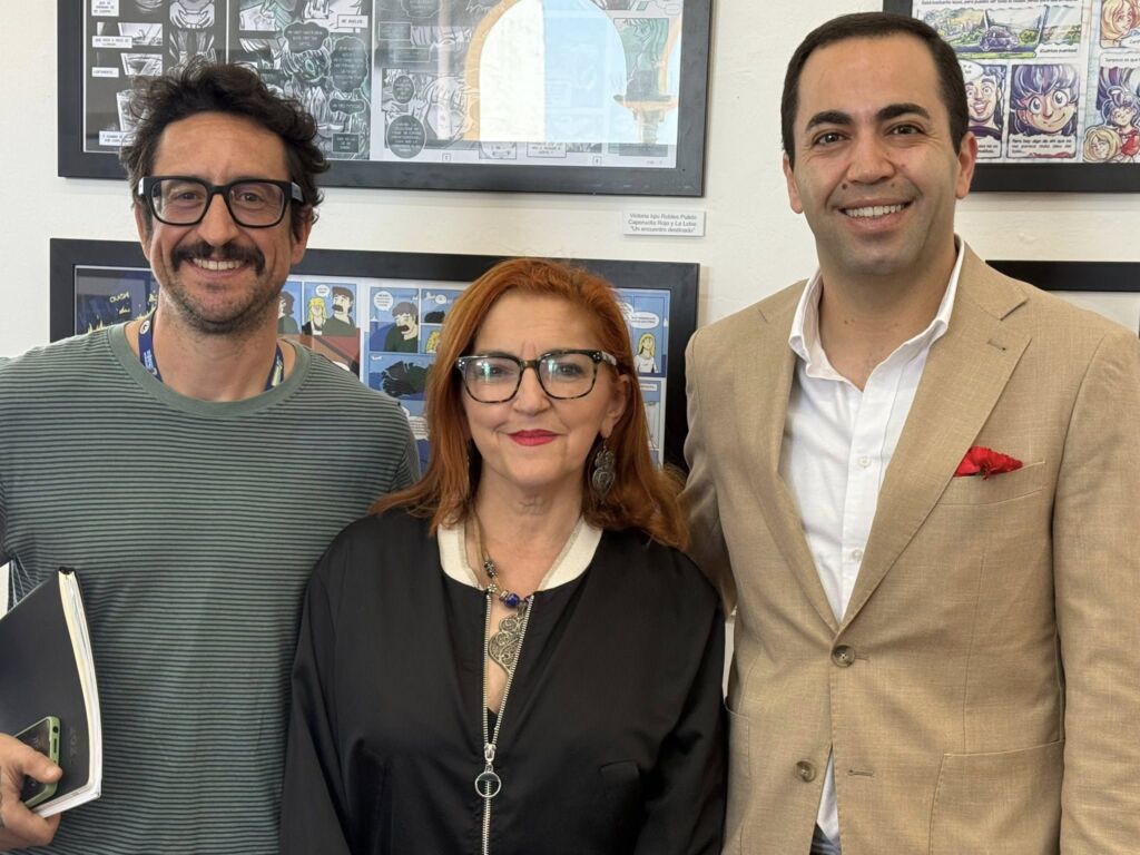 O vereador Cláudio Monteiro representou a Câmara Municipal de Elvas na inauguração da mostra, acompanhado de Marisol Torres e Andrés Martín, da Concejalía de Juventud do Ayuntamiento de Badajoz.