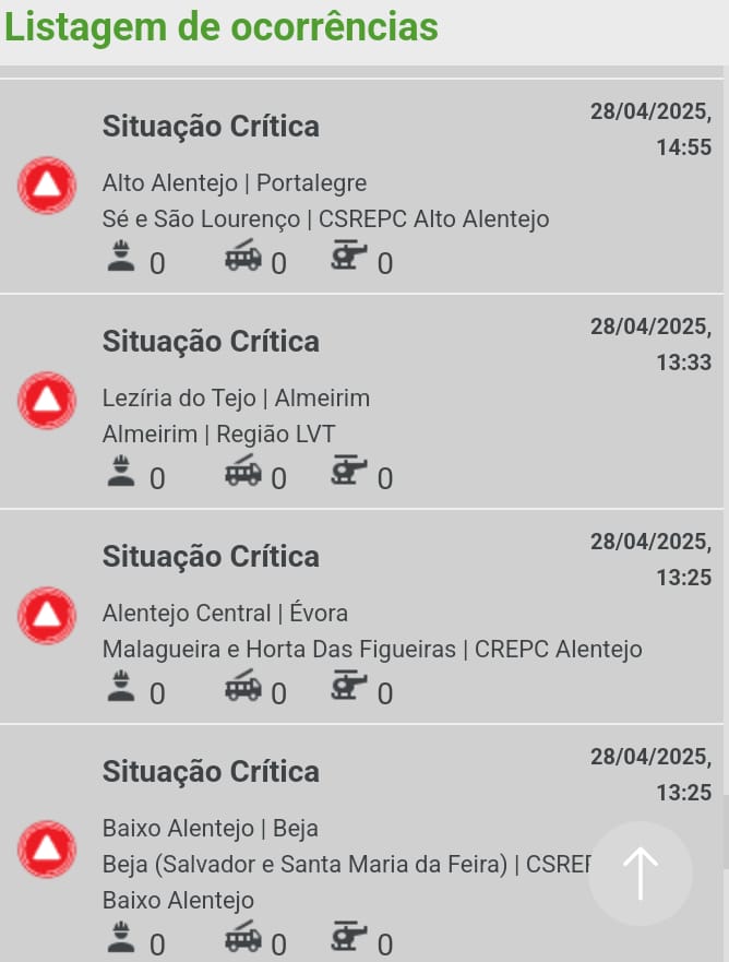Apesar de estar praticamente tudo de volta à normalidade, após o apagão de ontem, nesta terça-feira, 29 de Abril, os distritos de Portalegre, Évora e Beja, o Alentejo, continuam classificados na listagem da Autoridade Nacional de Emergência e Protecção Civil como estando em “situação crítica”.