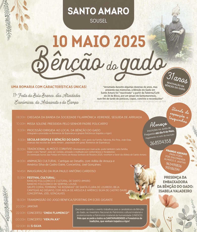 A Junta de Freguesia de Santo Amaro vai realizar, em colaboração com a Câmara Municipal de Sousel, a tradicional Bênção do Gado e a 11ª edição da Festa do Bolo Branco.