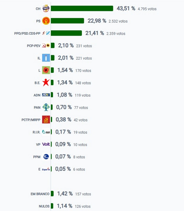 Seguiu-se o Partido Socialista, com 22,98%, e a AD, com 21,41%.