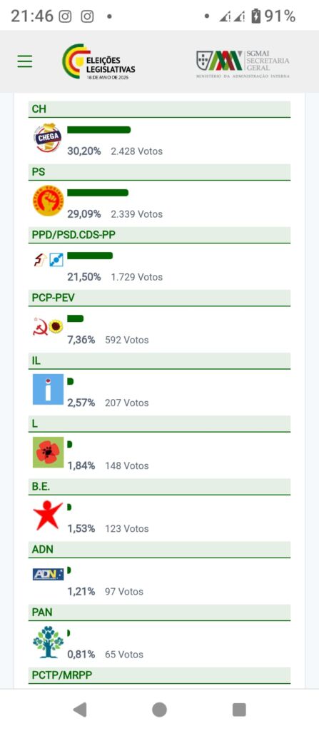 O Chega venceu em Ponte de Sor com 30,20% dos votos.