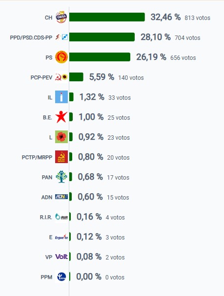 A AD obteve 28,10% das votações e ficou em segundo lugar. O PS foi o terceiro partido mais votado, obtendo 26,19% dos votos.
