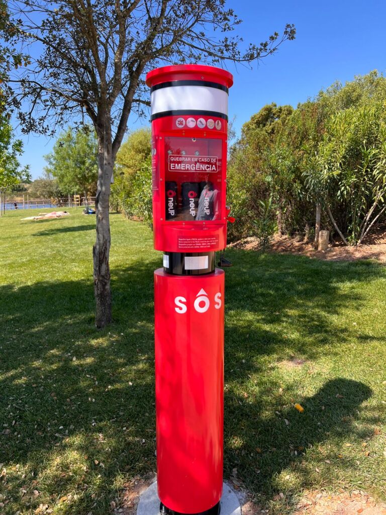 Instalado num “totem” junto à praia, configura um sistema de salvamento aquático para uso público que confere aos utilizadores da praia segurança permanente ao dispor de boias e ligação de emergência às autoridades de segurança e socorro.