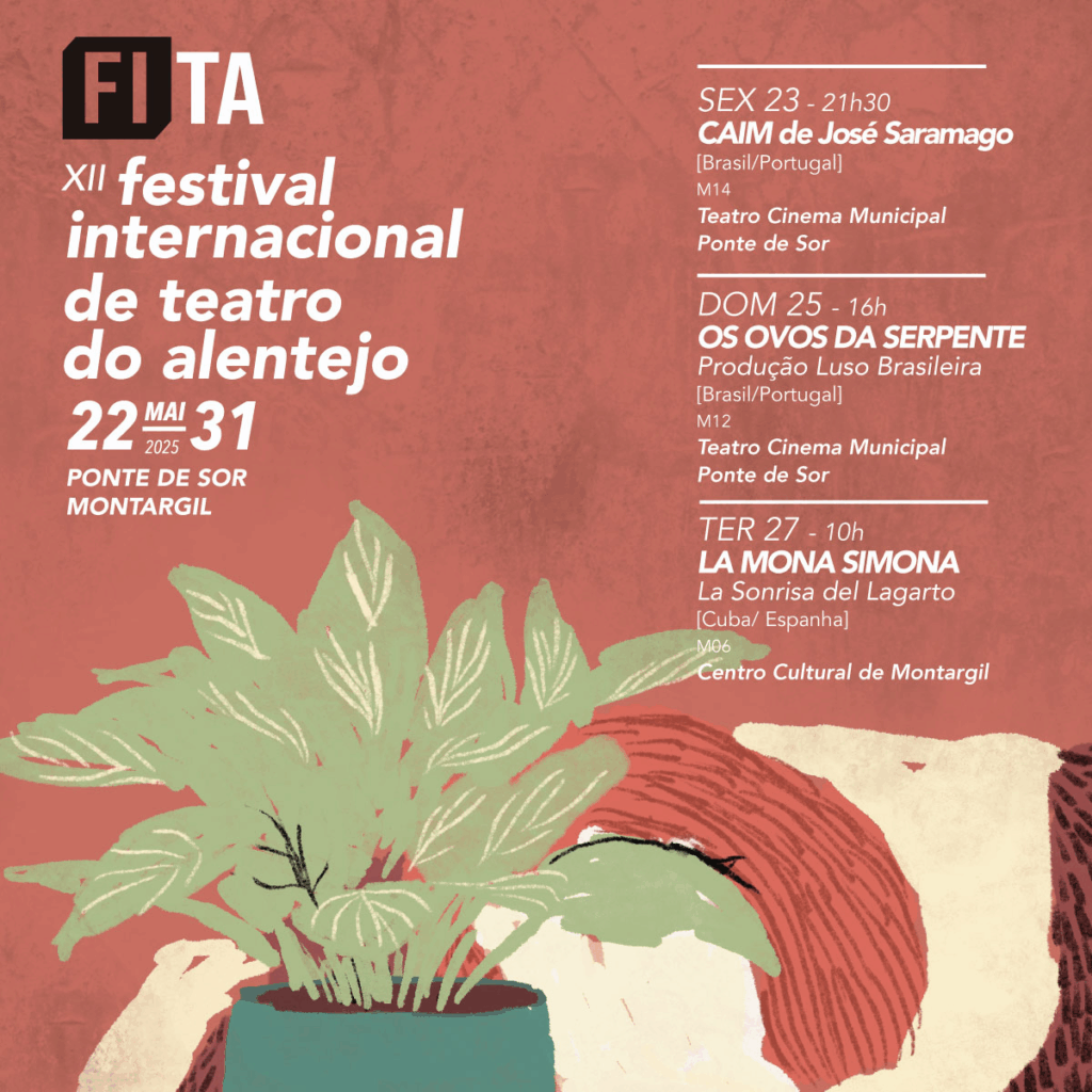 A organização destaca três exibições, a primeira delas esta sexta-feira às 21h30: “CAIM”, de José Saramago é dramatizado no Teatro Cinema Municipal de Ponte de Sor. Domingo, dia 25, a peça “Os Ovos da Serpente” é apresentada na mesma sala, às 16h00.