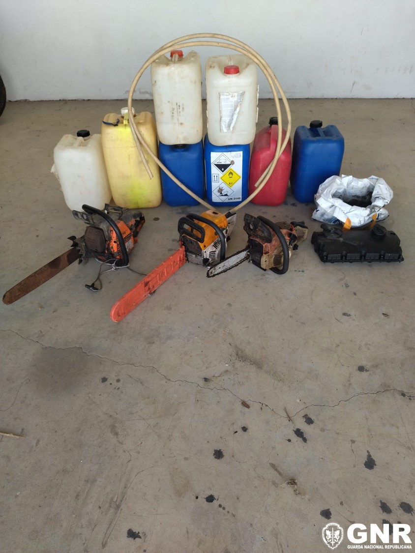 A GNR apreendeu diverso material associados a três furtos, no concelho de Borba, distrito de Évora, como oito jerricãs, três motosserras e duas mangueiras com vestígios de gasóleo, foi hoje anunciado.
