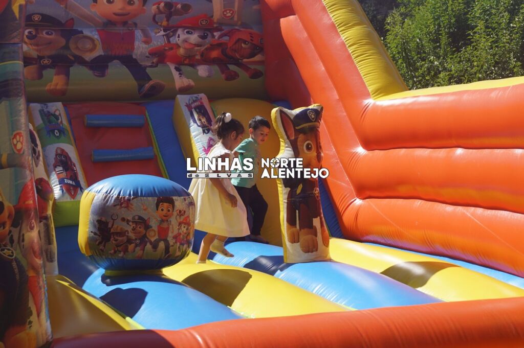 As crianças presentes também se divertiram no insuflável disponível no local.
