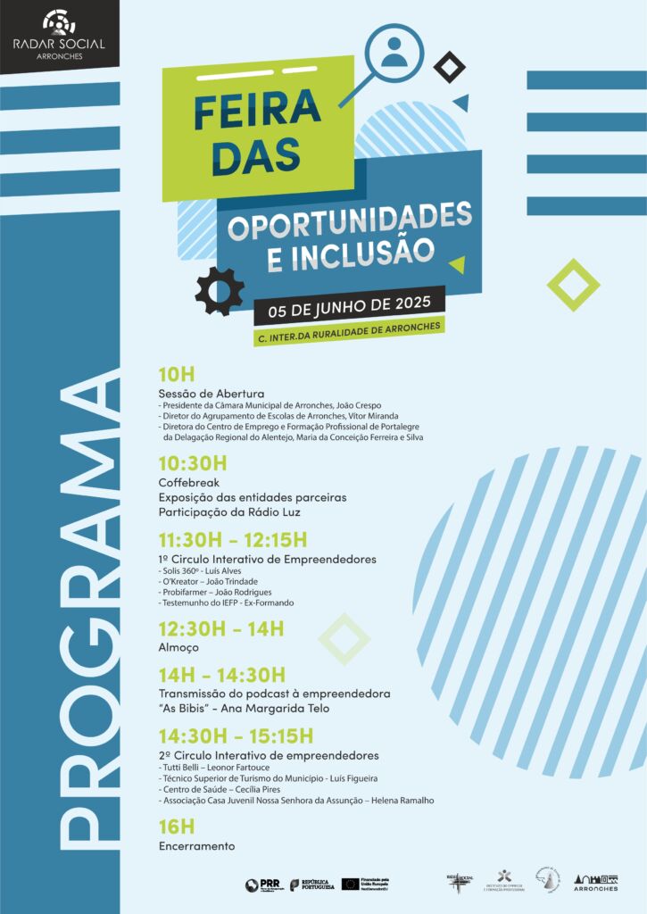 O Centro Intermunicipal da Ruralidade de Arronches será palco, no próximo dia 5 de junho, do palco da Feira das Oportunidades e Inclusão, uma iniciativa promovida pelo projeto Radar Social Arronches, com o objetivo de promover o empreendedorismo, a inclusão e a valorização das competências locais.