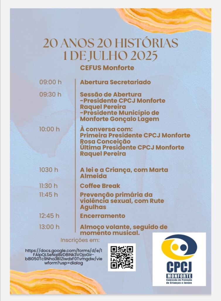 A Comissão de Proteção de Crianças e jovens de Monforte completa em 2025 duas décadas de existência. A data vai ser assinalada dia 1 de Julho com um programa comemorativo que evoca os 20 anos de trabalho desenvolvido em benefício das crianças e dos jovens em risco neste concelho do distrito de Portalegre.