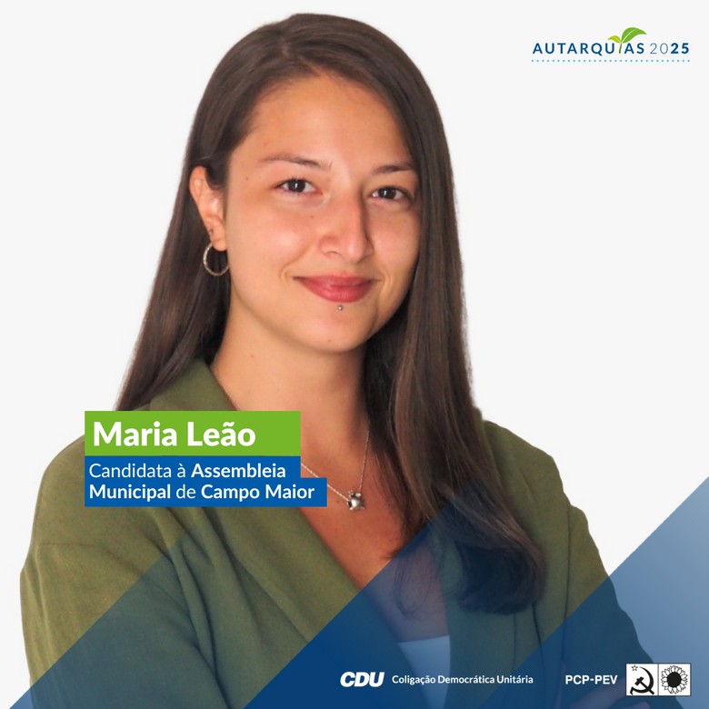 Maria Leão tem 29 anos e é professora. É mestre em Ensino de Línguas Estrangeiras no 3º Ciclo e Ensino Secundário e membro da Assembleia Municipal de Campo Maior pela CDU (Coligação Democrática Unitária PCP-PEV). É independente.