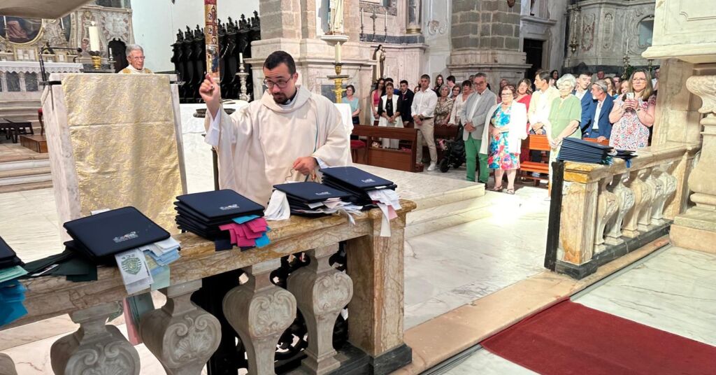 O Padre Rodrigo Oliveira presidiu à cerimónia, destacando o valor da vocação dos jovens, a importância da fé e da escola como espaço de crescimento. As pastas foram entregues e solenemente abençoadas, marcando o fim de uma etapa e o início de um novo caminho que enche de ilusão alunos e familiares.