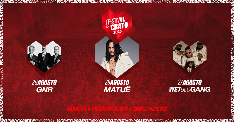O Festival do Crato, que se realiza entre 27 e 30 de agosto, revela mais três nomes do cartaz: GNR, Wet Bed Gang e Matuê.