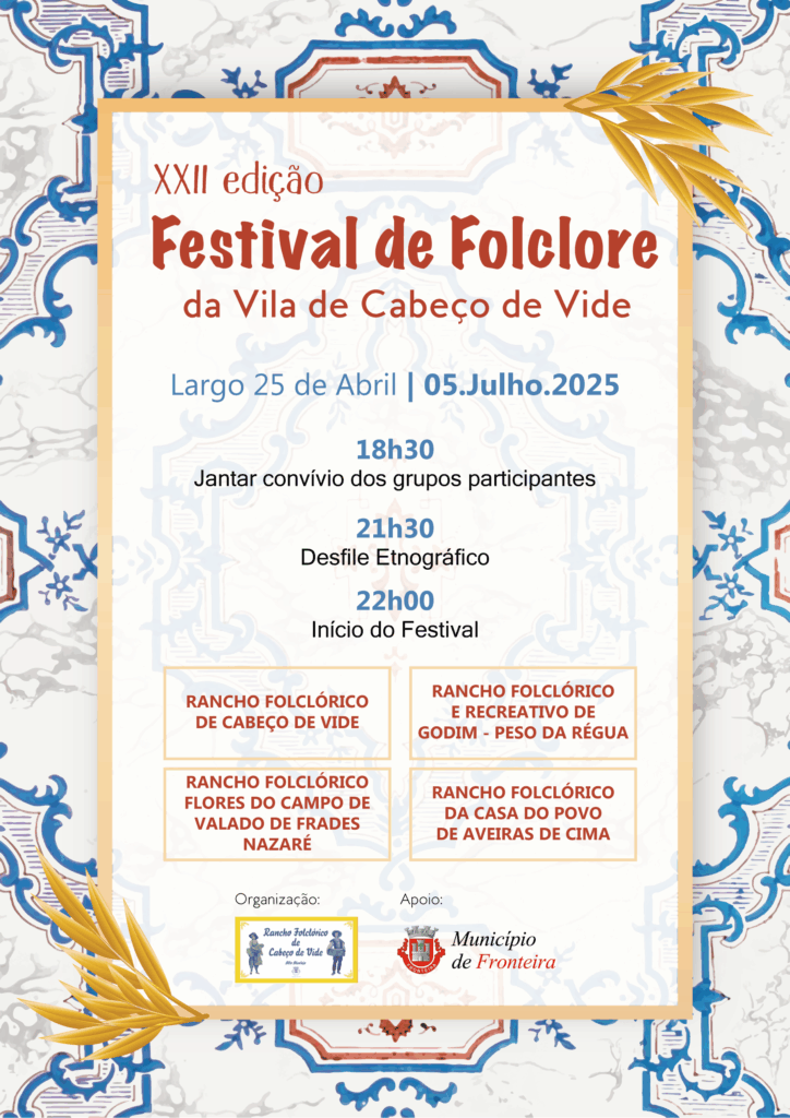 O evento, organizado pelo Rancho Folclórico de Cabeço de Vide, com o apoio da Câmara Municipal de Fronteira, vai decorrer na Praça 25 de Abril.