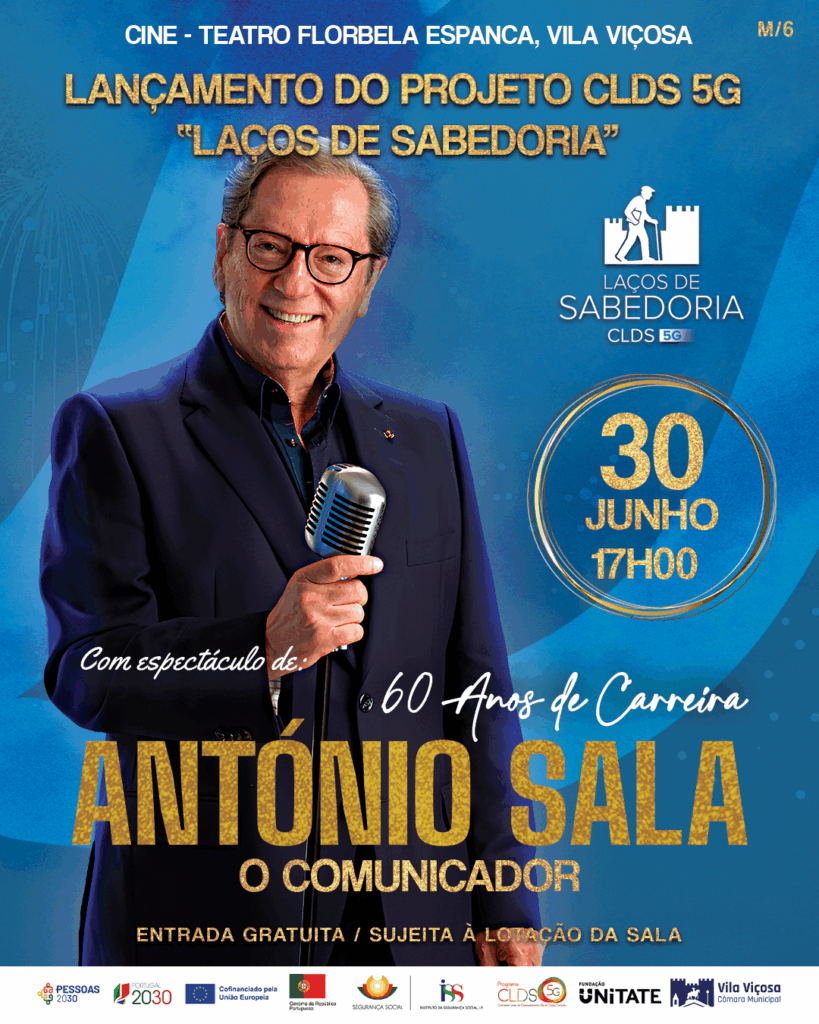 O Cine-Teatro Florbela Espanca, em Vila Viçosa, acolhe esta tarde, pelas 17h00, o lançamento do projeto “Laços de Sabedoria – CLDS 5G”, uma iniciativa da Fundação UNITATE em parceria com o Município, que tem como objetivo de combater o isolamento, promover o envelhecimento ativo e reforçar a coesão social no concelho.