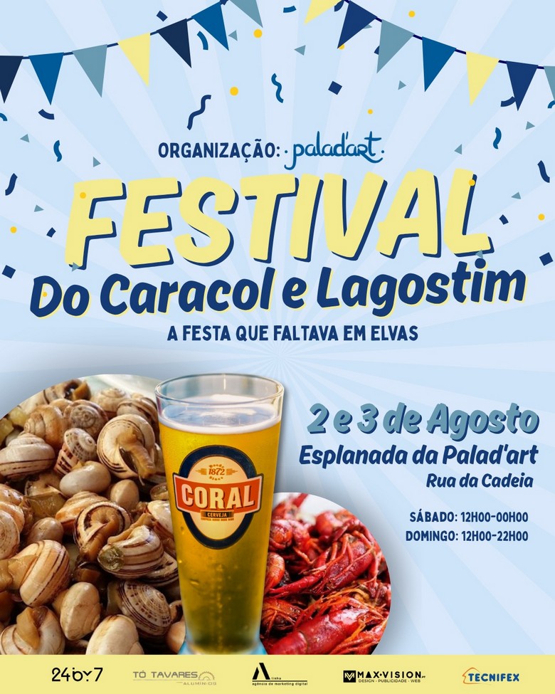 Prepare o apetite, chame os amigos e vá com vontade de molhar o pão no molho. O Festival do Caracol e Lagostim chega, nos dias 2 e 3 de Agosto, à esplanada da Palad’art, na Rua da Cadeia, em Elvas, e promete “preencher uma lacuna” no calendário festivo da cidade.