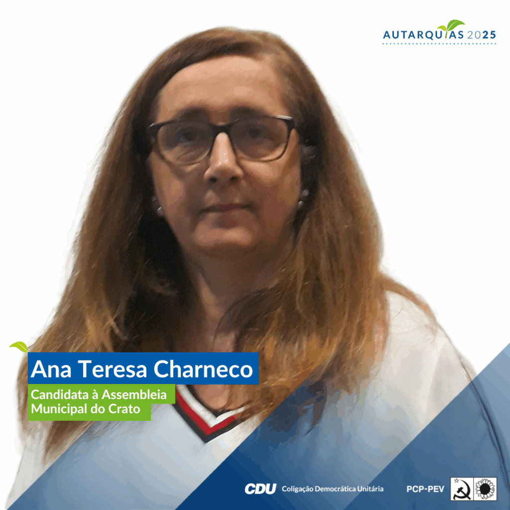 No comunicado de hoje, a CDU anunciou ainda que Ana Teresa Charneco, de 58 anos, natural do concelho de Crato, é a cabeça de lista à assembleia municipal deste concelho alentejano.