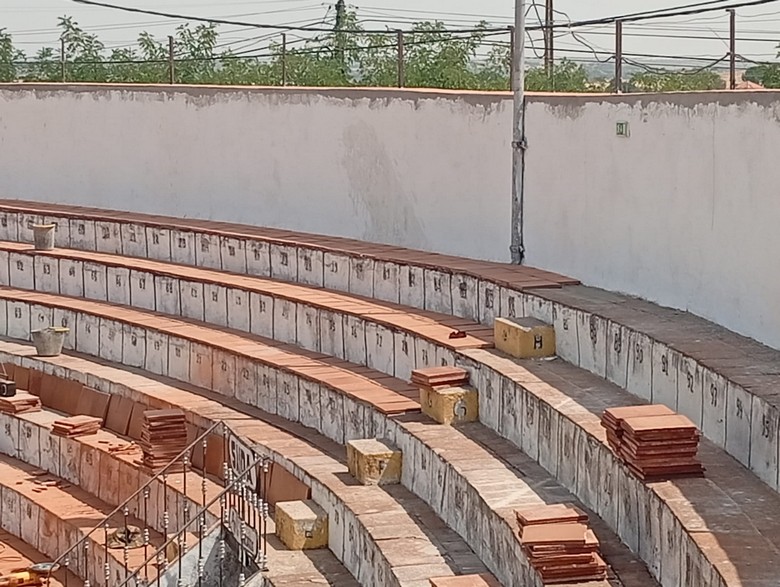 Posto isto, os trabalhos incluem a substituição do revestimento das bancadas por tijoleira cerâmica, com acabamento repelente à água, e a pintura dos degraus com tinta adequada para exteriores, após raspagem da tinta existente e tratamento das fissuras.