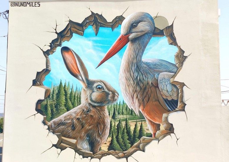 A intervenção artística representa duas espécies típicas do Alentejo, destacando-se a lebre, figura de especial simbolismo para a comunidade local.