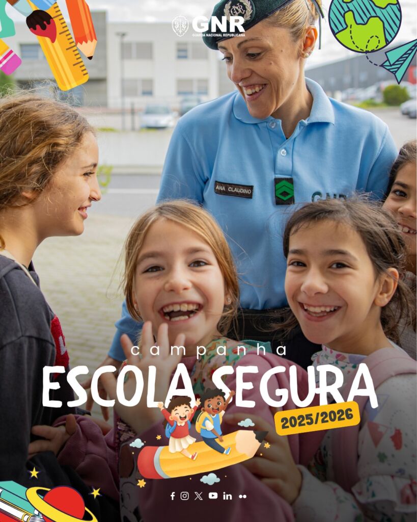 A GNR iniciou hoje, 11 de Setembro, a campanha “Escola Segura” 2025/2026, com ações de sensibilização em mais de 4.600 estabelecimentos escolares e dirigidas a um universo de cerca de 678.000 alunos, professores e encarregados de educação em todo o território continental.