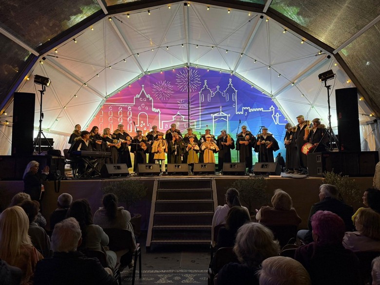 A noite abriu, como sempre, no Palco da Feira, neste sábado com as Roncas d’Elvas da associação Arkus.