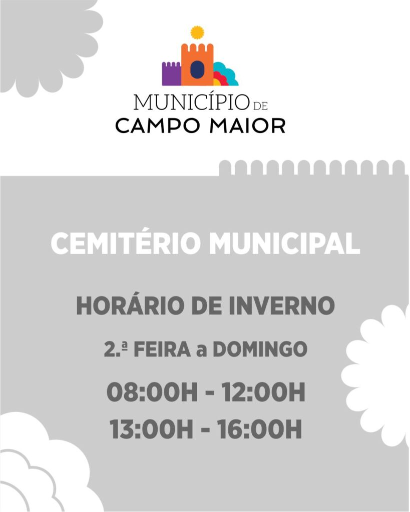 O Município de Campo Maior informou, através de uma publicação na rede social Facebook, que o Cemitério Municipal já se encontra a funcionar em horário de inverno.