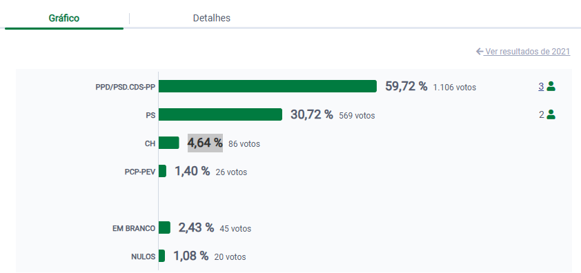 Seguiram-se, como forças partidárias mais votadas, o PS com 30,72 %, e o CHEGA, com 4,64 %