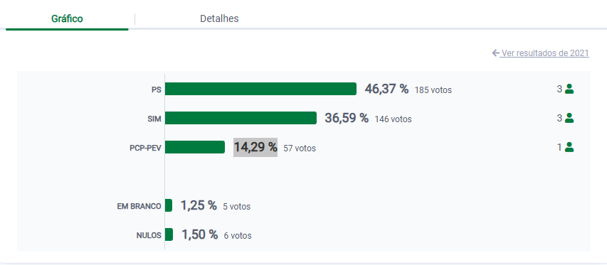 Seguiram-se, como forças partidárias mais votadas, o SIM, com 36,59 %, e o PCP-PEV com 14,29 %