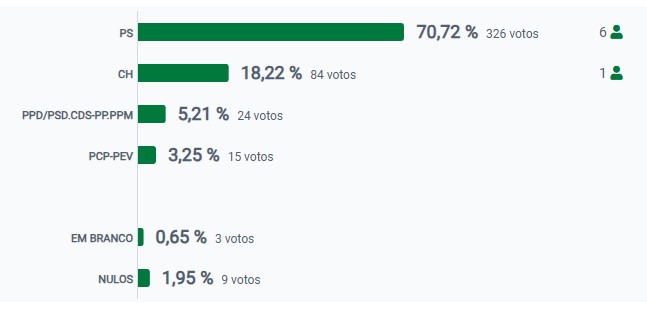 Seguiram-se, como forças partidárias mais votadas, o Chega, com 18,22%, AD, com 5,21% e CDU com 3,25%.