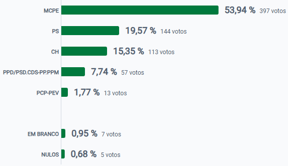 Seguiram-se, como forças partidárias mais votadas, o PS, com 19,57%, e o Chega, com 15,35%.