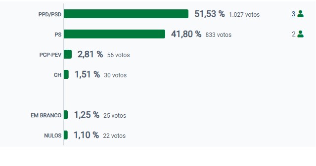 A segunda força partidária mais mais votada foi o Partido Socialista, com 41,80% . A coligação PCP/PEV obteve 2,81% e o Chega 1,51%.