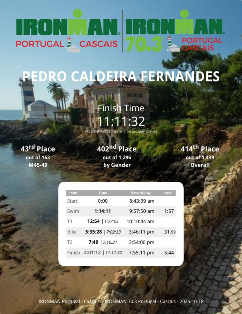 Pedro Caldeira Fernandes enfrentou com grande determinação os 3,8 km de natação, 180 km de ciclismo e 42,2 km de corrida, cruzando a meta ao fim de 11:11:32 horas, menos 1:05 horas que em 2023.